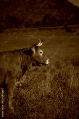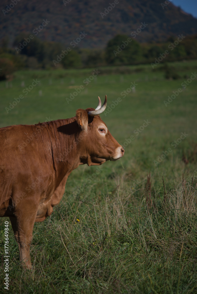vache de race salers, dans son pré en auvergne