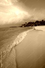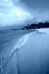 Tranquil closeup calm sea water waves with palm trees. Beautiful Panorama, Tropical island beach landscape exotic shore coast. Summer vacation, holiday amazing nature. Relax paradise, Maldives.