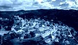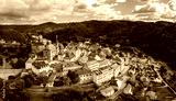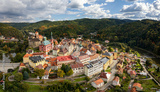 drone panorama cityscape of Loket village in the Karlovy Vary Region of the Czech Republic