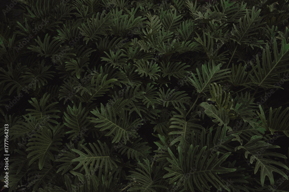 Mixed leaves, green leaves, abstract texture, tropical leaves, natural dark green background. PHOTO