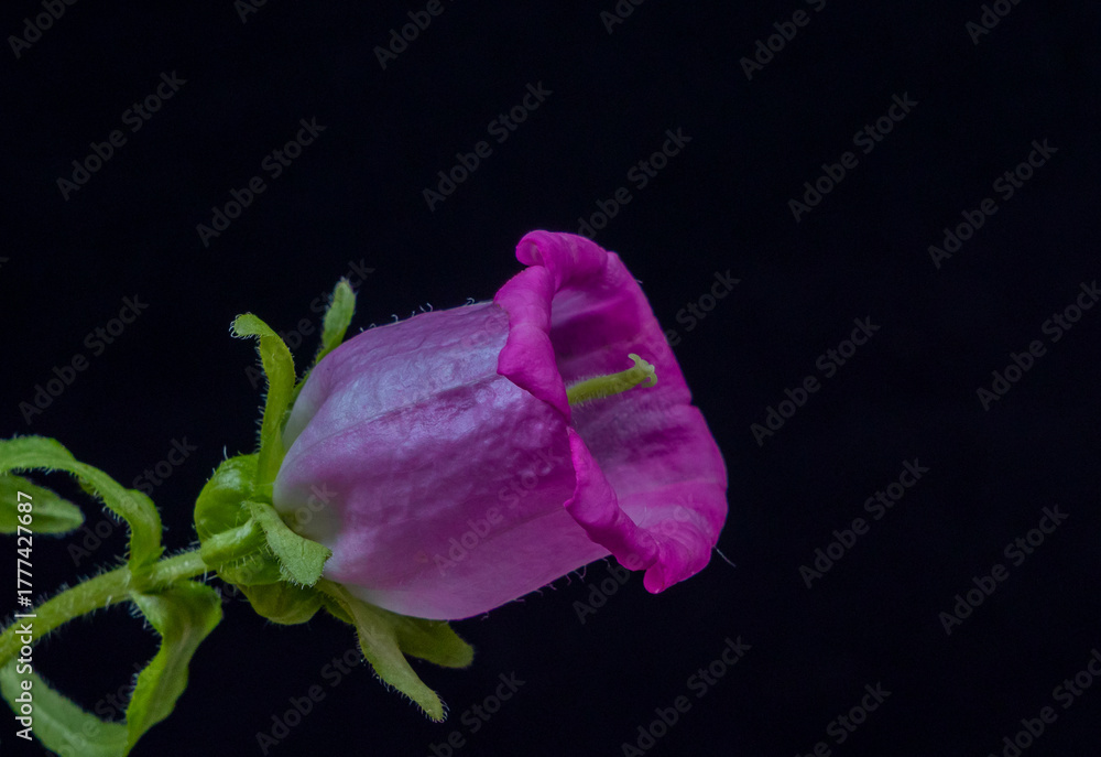 Close-up of a Campanula medium (Canterbury Bells) flower on a black background