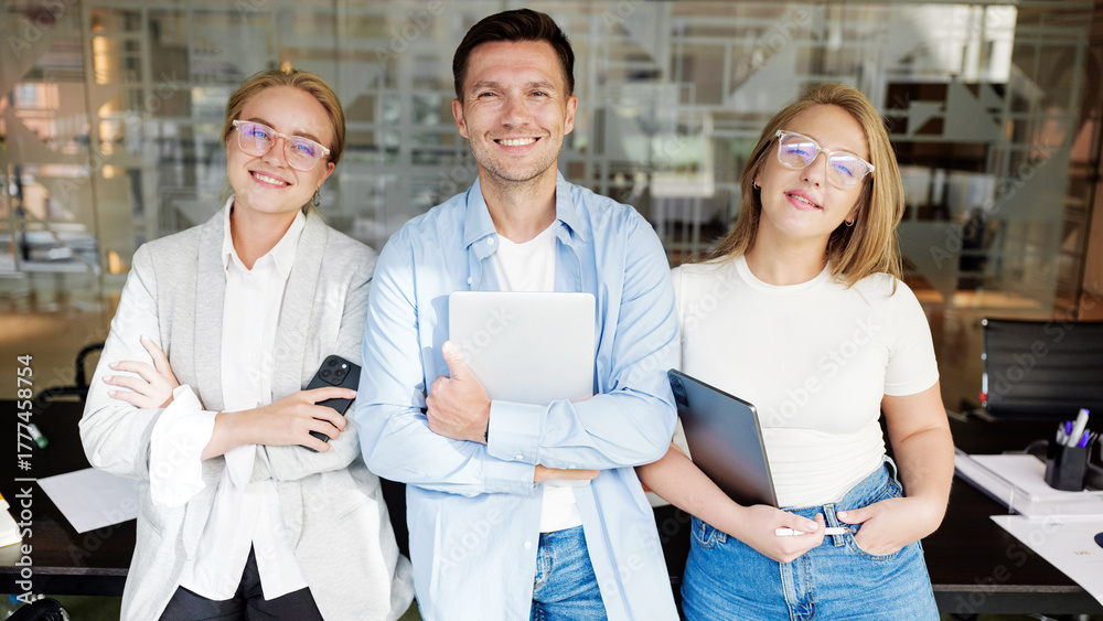 Team of young professionals posing in office