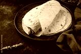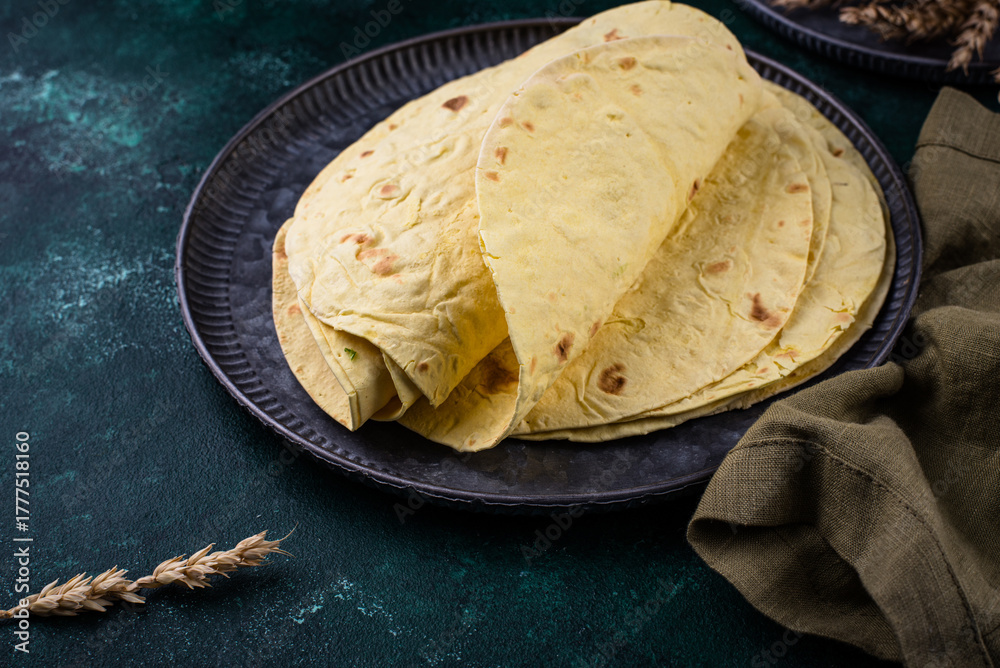 Lavash flat bread on green background