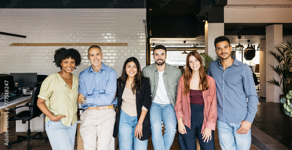 Diverse business team smiling at camera in office