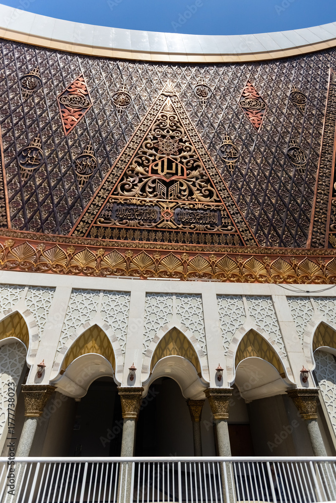 Entrance view of the Grand Mosque of West Sumatra, Mosque with Minangkabau Architecture in Padang, Sumatra Indonesia