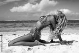 Luxury woman in sexy golden bikini and jewelry posing on tropical beach with turquoise ocean, glamour fashion and summer lifestyle concept on Mauritius island