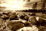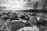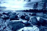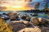 Sand Harbor State Park at Lake Tahoe Nevada USA scenic rocky shoreline with turquoise water and golden sunset light reflecting on waves beautiful outdoor travel destination surrounded by pine trees