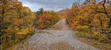 Panoramic view of the Devil’s Slide rock formation surrounded by autumn trees in the Bükk Mountains, Hungary.