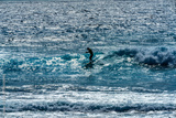 Colorful Surfer Offshore Waves Sandy Beach Southeastern Oahu Hawaii