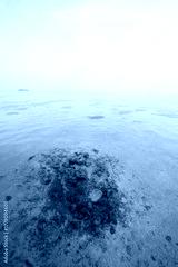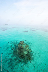 Tranquil closeup calm sea water waves with palm trees. Beautiful Panorama, Tropical island beach landscape exotic shore coast. Summer vacation, holiday amazing nature. Relax paradise, Maldives.