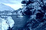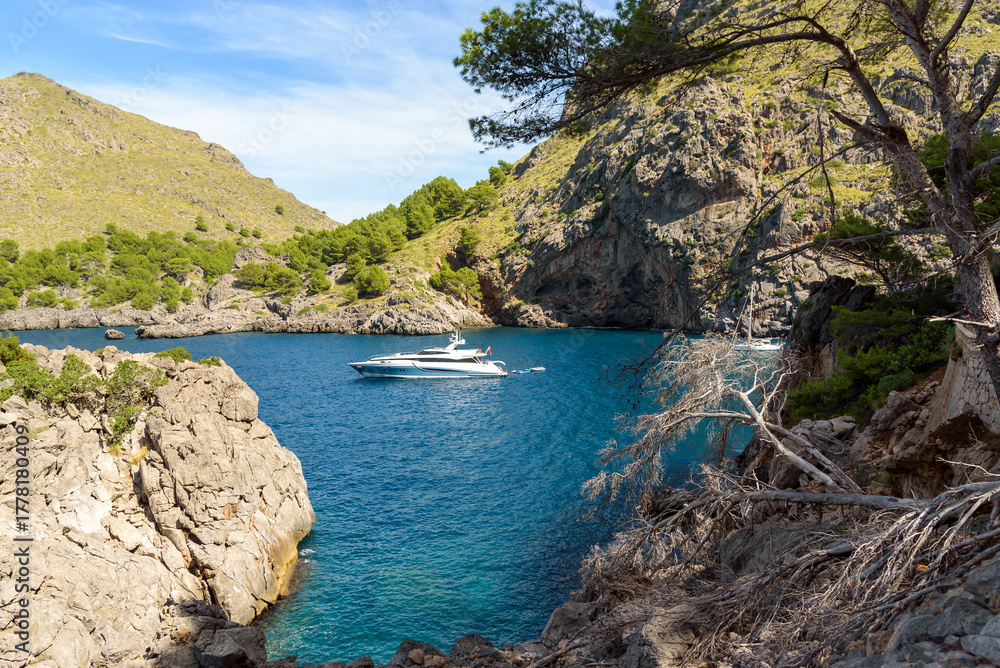Yacht anchored in Cala de sa Calobra bay, Mallorca, Spain