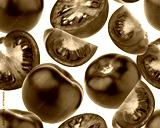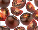 Black tomatoes seamless pattern. Black tomato isolated on white background