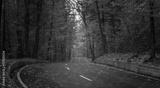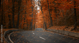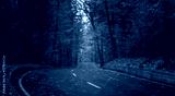 road through dark night forest in autumn