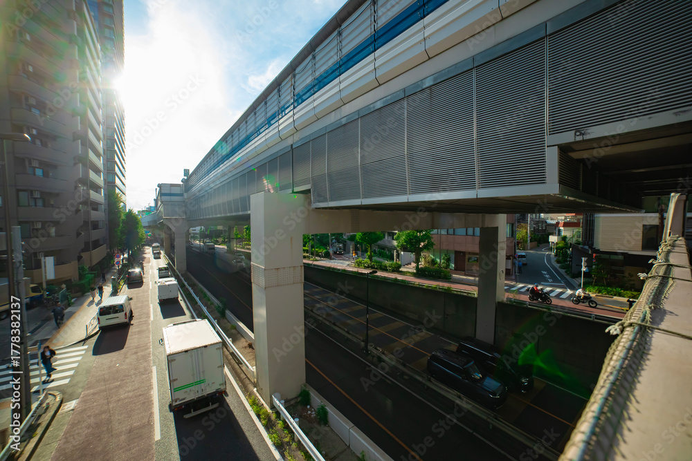 A cityscape of traffic jam at the city street in Tokyo wide shot