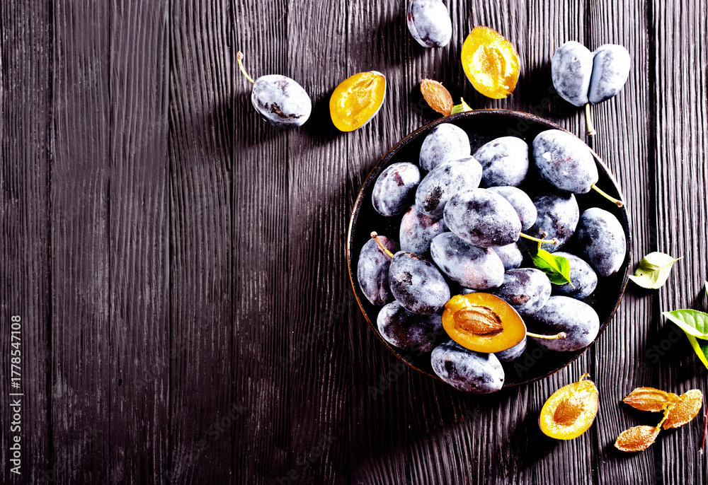 Fresh plums on plate