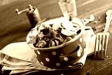 edible mushroom in metal bowl