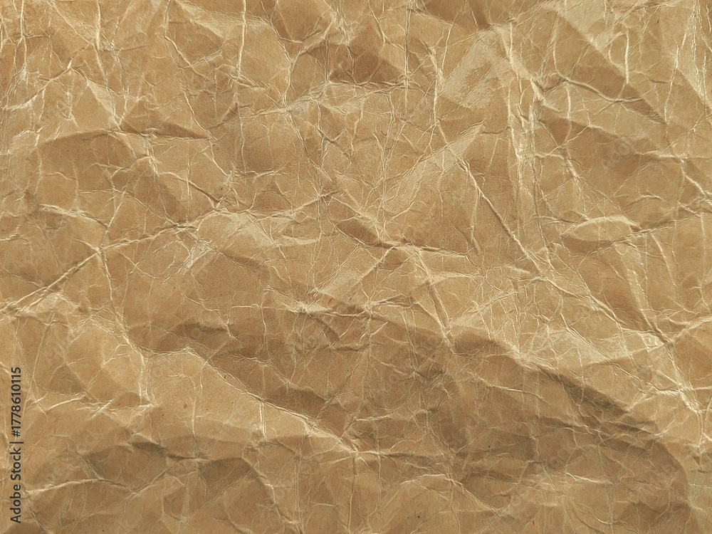 Old crumpled brown paper background with rough texture and natural creases. Vintage wrinkled brown paper surface with copy space for design.