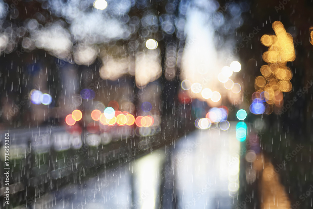 Raindrops background evening in an autumn park, blurred soft backdrop, autumn weather