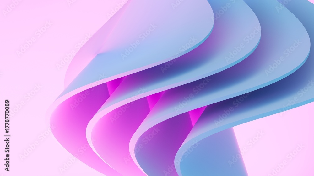 Abstract wavy curved 3d render. Pink soft layers of plastic with lines, folds, ruffles. Modern wallpaper, texture pattern.