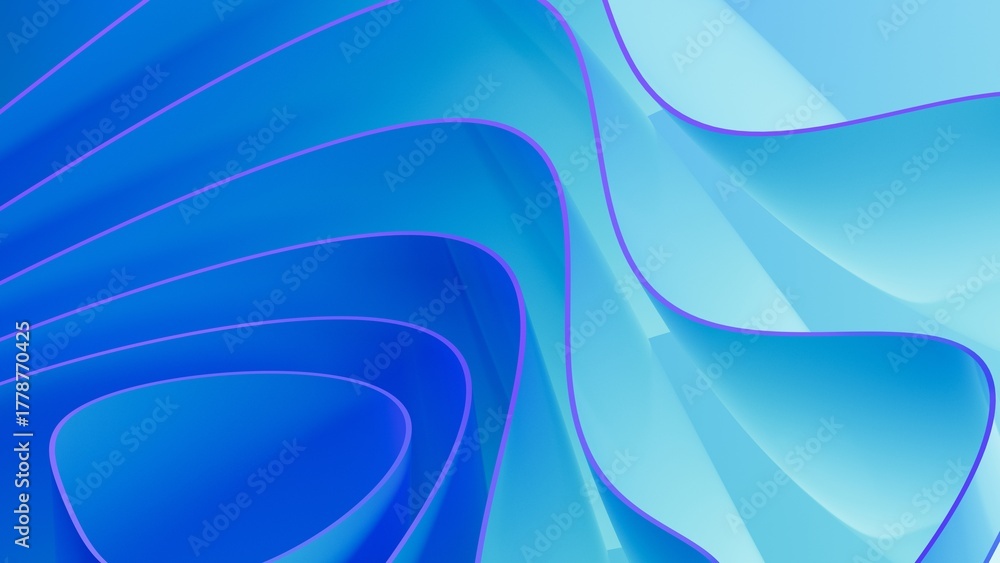 Abstract wavy curved 3d render. Blue soft layers of plastic with lines, folds, ruffles. Modern wallpaper, texture pattern.