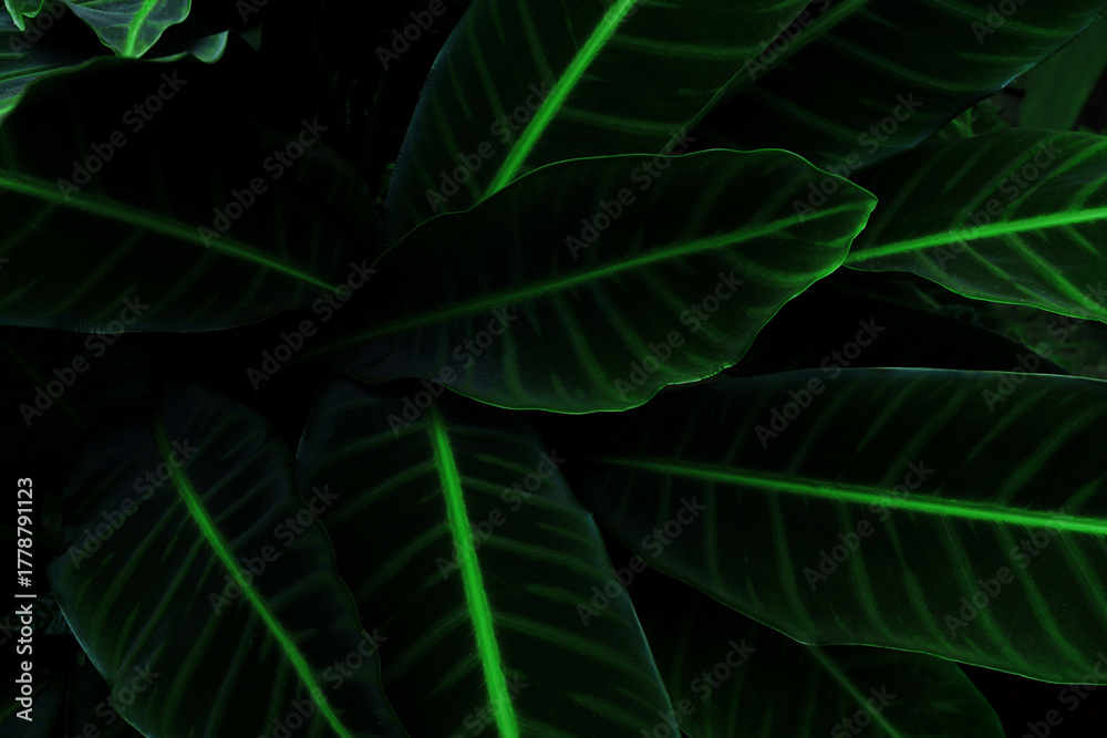 abstract green leaf texture, tropical leaf foliage nature dark green background