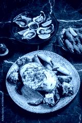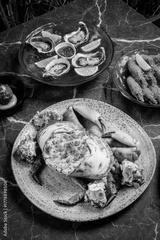 Sapateira Recheada traditional Portuguese stuffed crab meal with mixed seafood side dishes on gourmet restaurant table in Lisbon Portugal