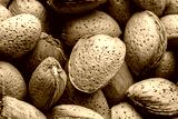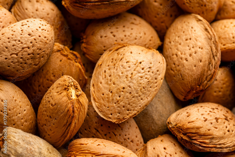 Sfondo di mandorle biologiche fresche, cibo vegetariano
