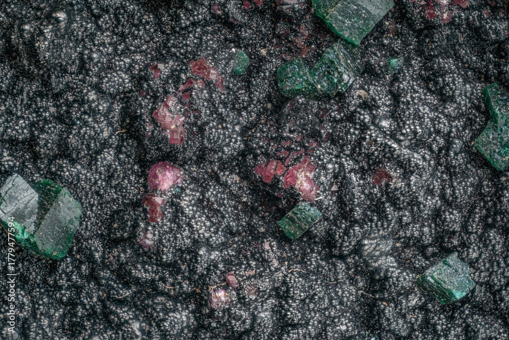 Macro Cobaltocalcite, Dioptase and Heterogenite mineral specimen