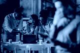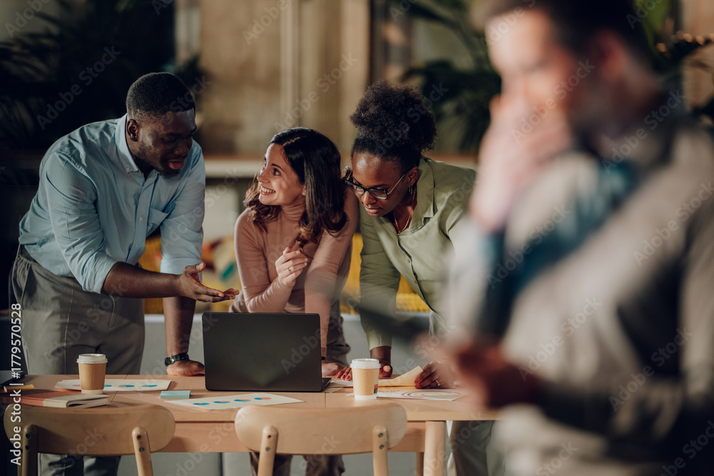 Diverse business team collaborating on project in office