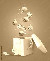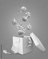Christmas celebration. Chocolate candies and cookies falling into gift box on pastel turquoise background