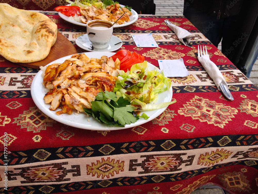 Turkish lunch with grilled chicken, salad, and bread at a local cafe. Warmth, taste and the everyday hospitality of Istanbul cuisine.