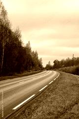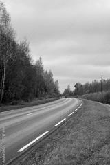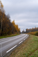 A Winding Country Road Lined with Yellow Birch Trees in Autumn