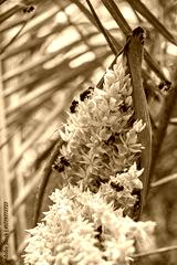 Bees, beautiful bees pollinating a palm tree in a forest in Brazil, selective focus.