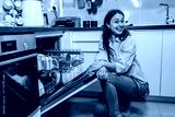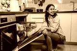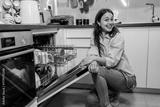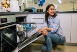 Young woman smiling by open dishwasher
