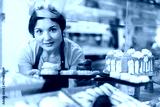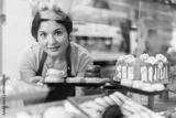Bakery latino saleswoman offers to buy fresh sweet cakes