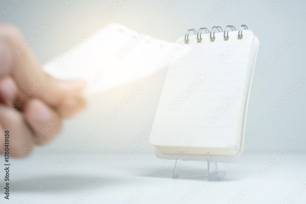 Minimal Concept of Planning or Note-Taking with Hand and Blank Notebook