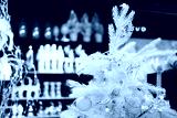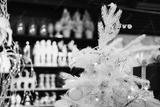 Close-up of a white artificial Christmas tree with pastel ornaments and string lights in a festive retail display. Holiday retail styling, pastel Christmas decor, winter gift aesthetics