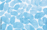Blue leaves pattern on paper background, closeup natural leaves texture background