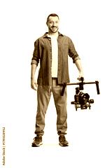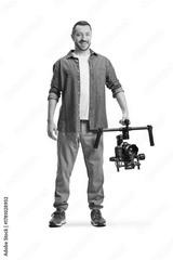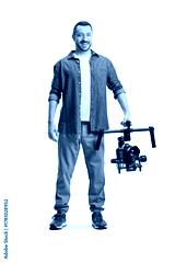Man holding a professional camera on a stabilizing mount