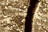 Slice of wood with tree rings and frost snow crystals as natural geometric pattern, minimal aesthetic abstract nature background. Natural wooden organic textures and shapes, white brown beige color