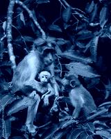 indian bonnet macaque monkey mon caring baby at the tree branch