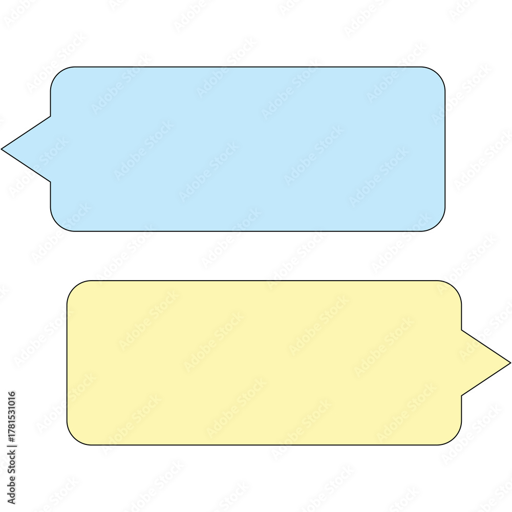Two Speech Bubbles In Light Blue And Yellow Colors With Tail Arrows Against A White Background