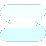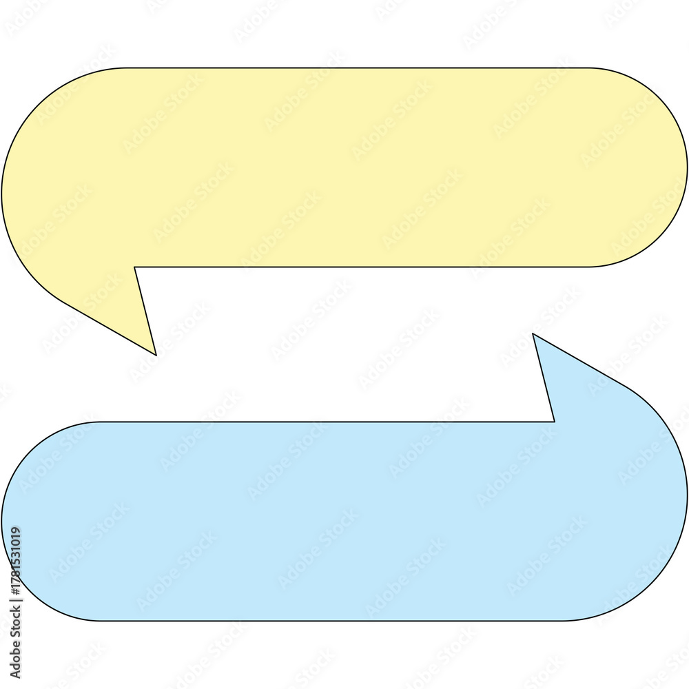 Two Rounded Speech Bubbles One Yellow and One Blue with Black Dashed Outlines Arranged Vertically with a Subtle Arrow Shape on Transparent Background