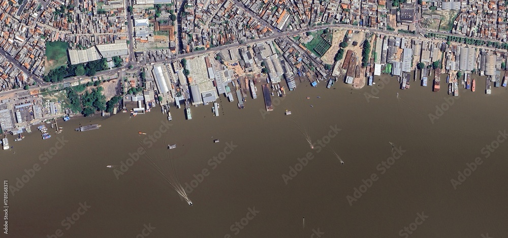 Belém, Pará, Brazil — Aerial view of the Amazon River city and tropical urban landscape, high-resolution satellite image