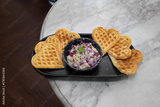 Delicious heart-shaped waffles and a vibrant salad arranged on a table