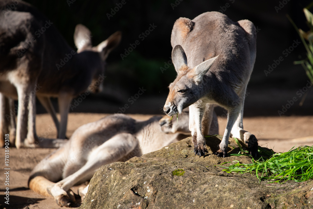 Australian Kangaroos Grazing, Resting, Warm Sunlight