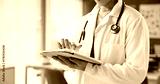 Medical, hands or person in hospital with tablet, research or online review of patient diagnosis. Healthcare, digital or doctor in clinic with tech, telehealth or evaluation report for treatment plan