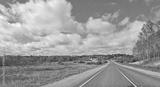 Country road through fields and forest cloudy day freedom of the road horizontal frame