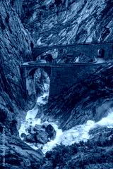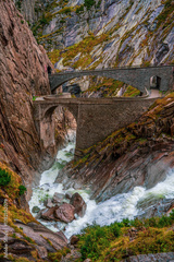 View of the Devil's Bridge in the Alps near Andermatt in Switzerland.