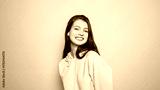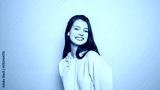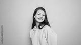 Cheerful young woman in a pink hoodie smiling at camera, clean studio shot on vivid yellow with ample copy space for marketing.